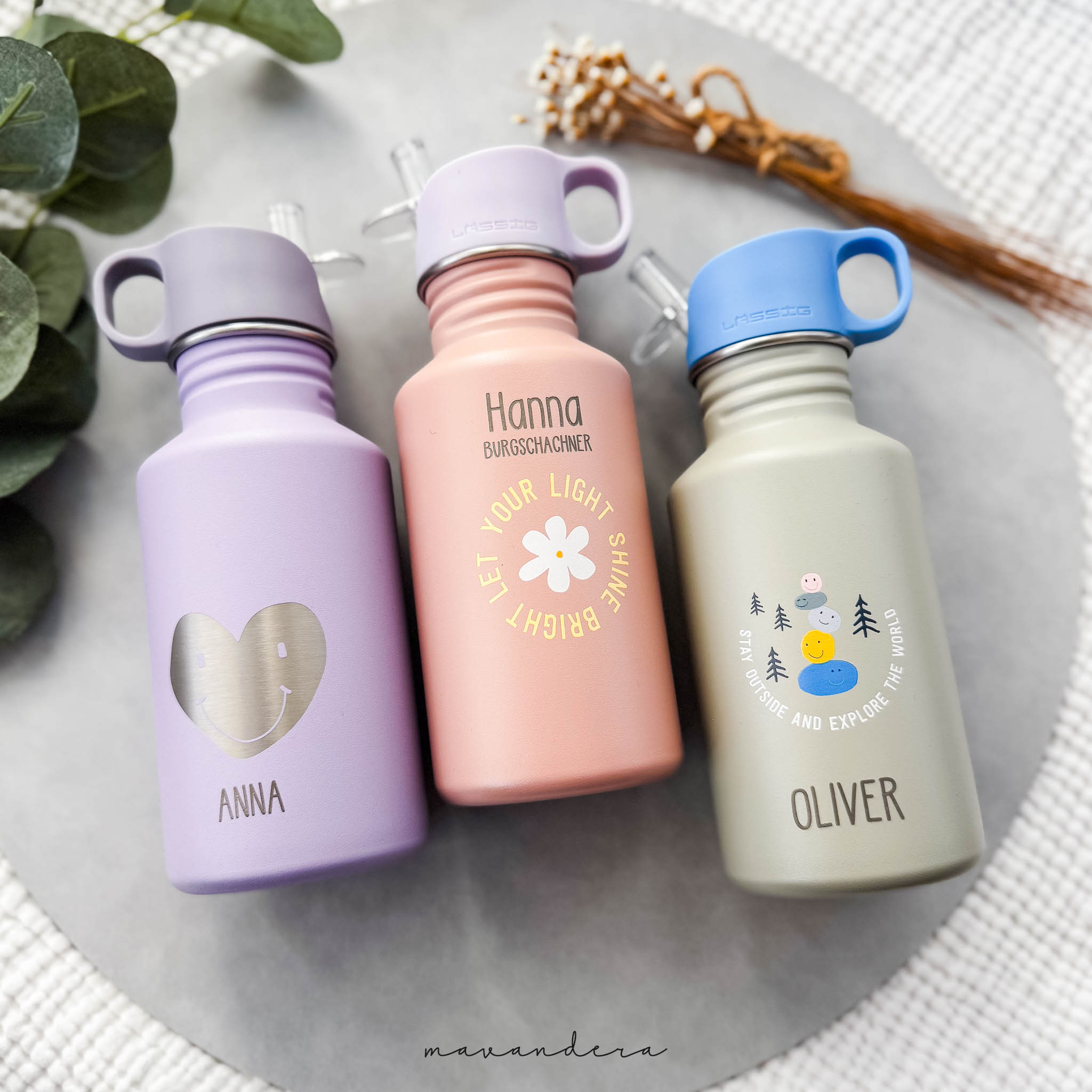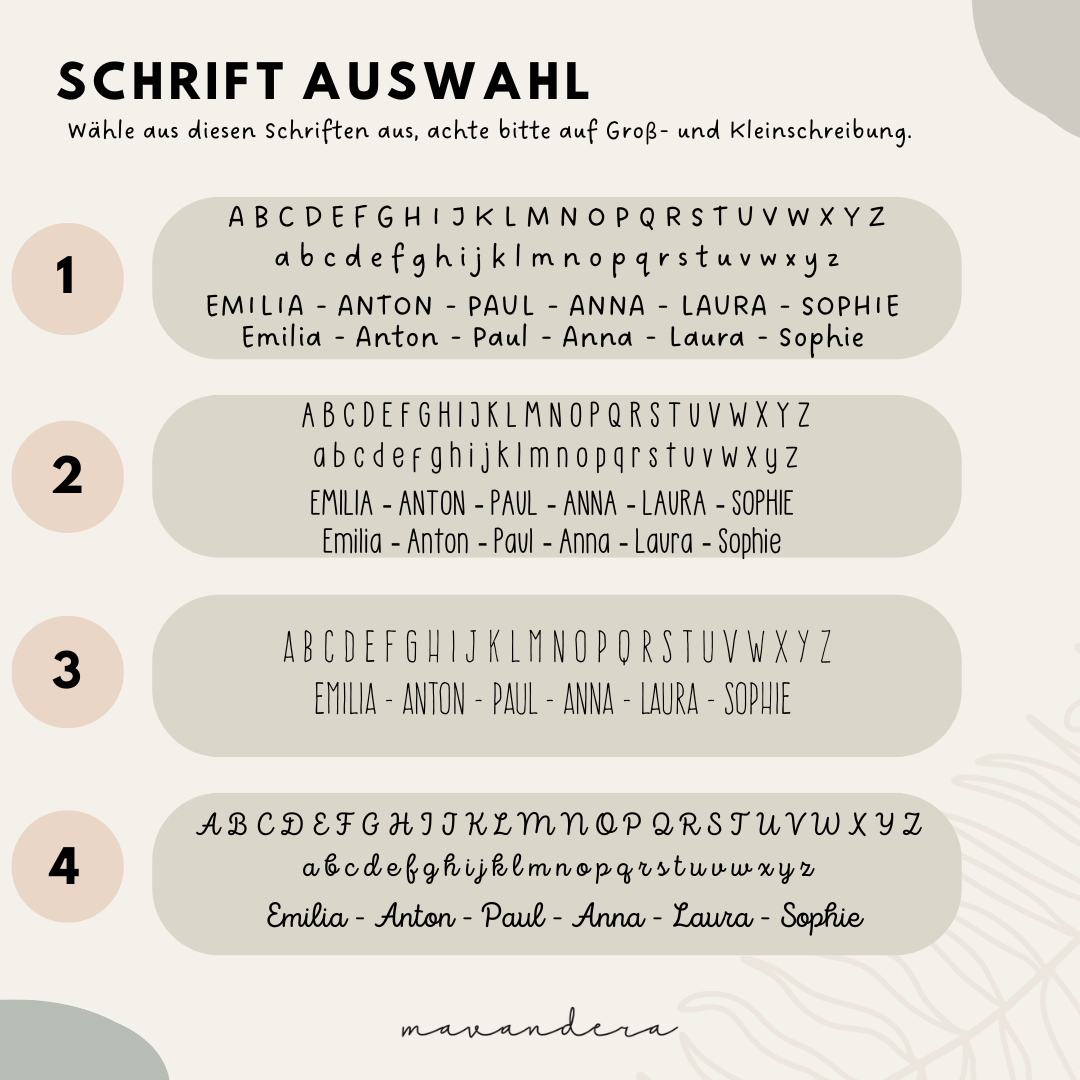 Die hochwertige Gravur ist langlebig und bleibt auch nach häufigem Gebrauch sichtbar – so wird die Trinkflasche zu einem individuellen und praktischen Begleiter. Du kannst die Schriftart selber auswählen – bitte achte auch auf die Groß- und Kleinschreibung. Wenn du den Name in Großbuchstaben möchtest, schreibe diesen auch so ins Feld (zB „LEO“). Wenn du die Gravur auf eine bestimmte Stelle möchtest, schreib uns das bitte detailliert dazu – wenn nichts dabei steht gravieren wir wie gehabt. Beidseitige Gravur ist auch möglich (Aufpreis).