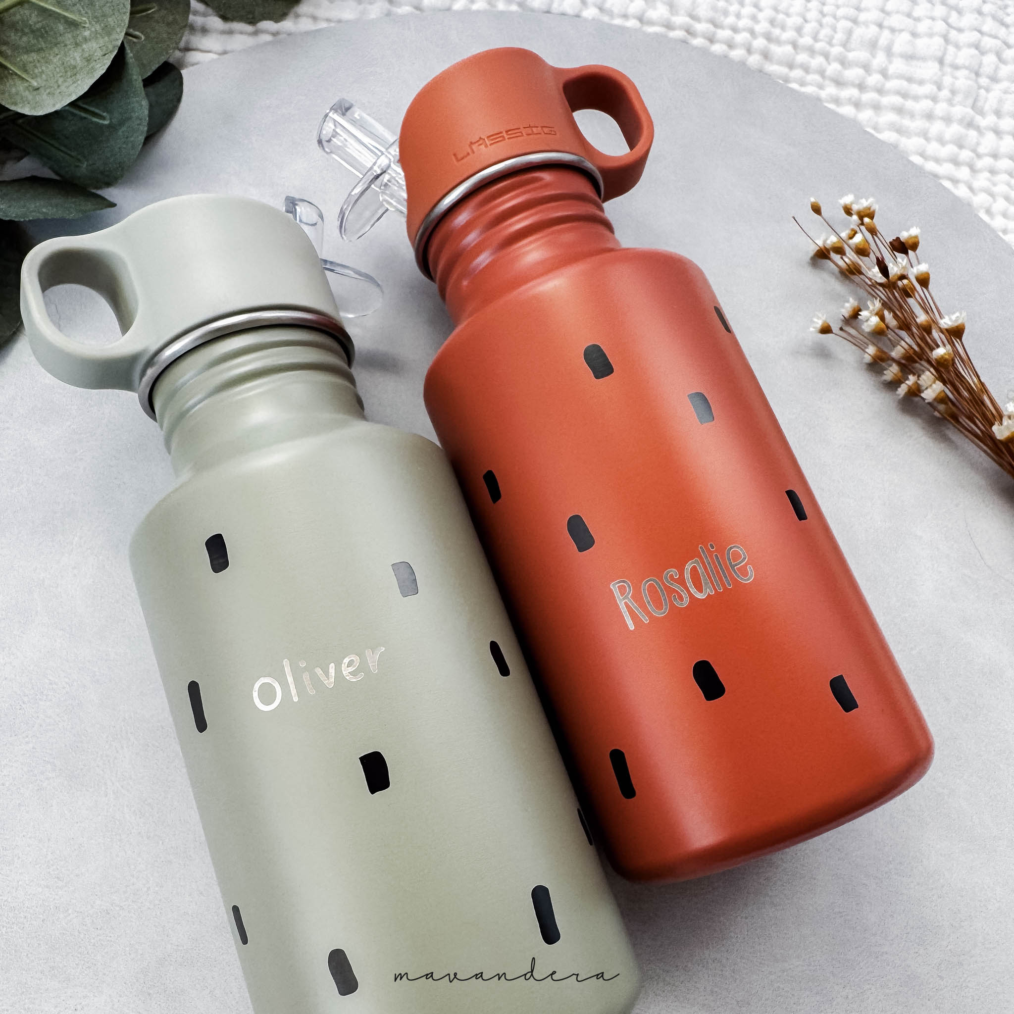 Edelstahl Kinder Trinkflasche – Happy Prints, Karamell | Gravur Name möglich