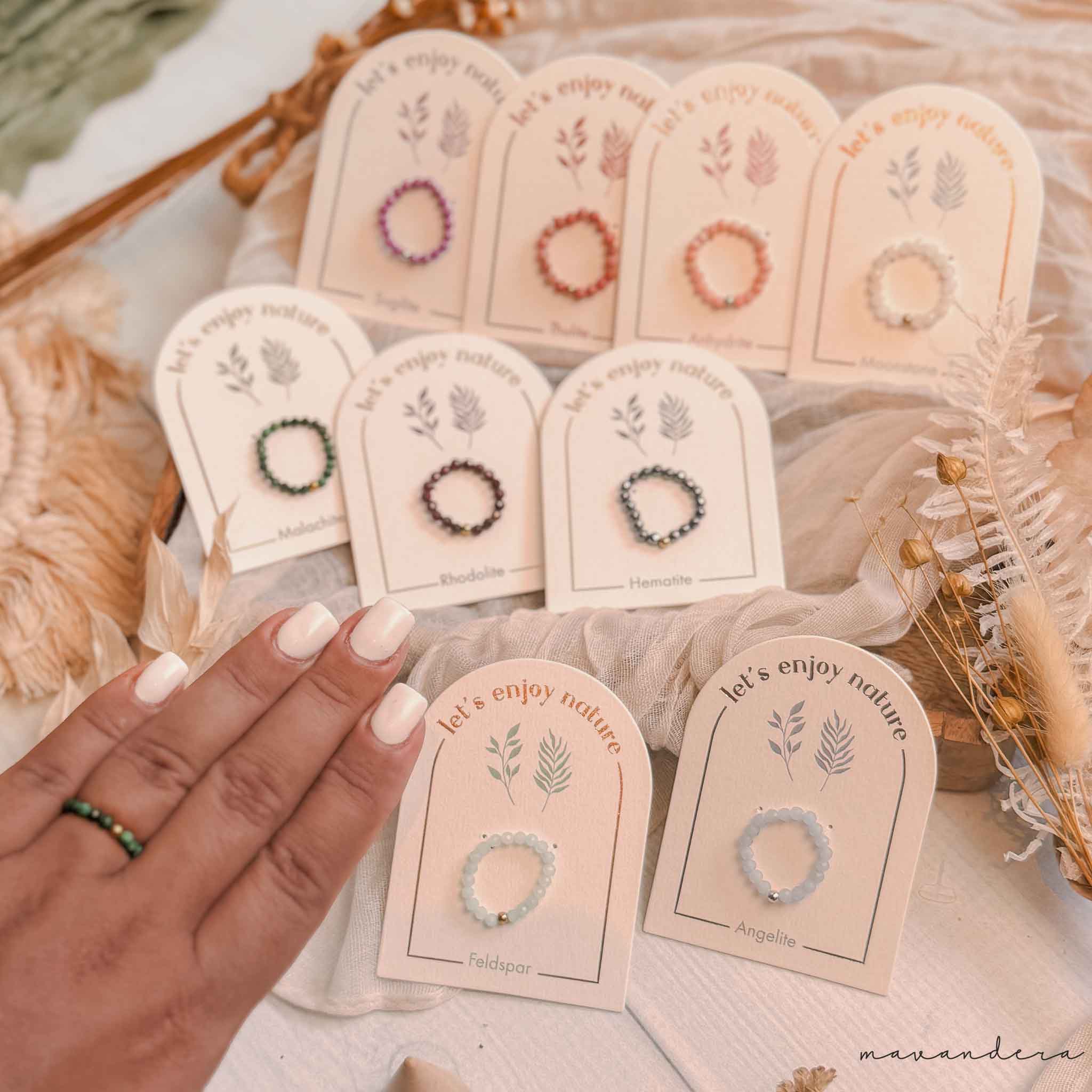Schmeichelnder, zarter Ring bestehend aus wundervollen echten Echtsteinen mit Bedeutung & Wirkung. Durch das elastische Gummiband ist der Ring flexibel zu tragen.