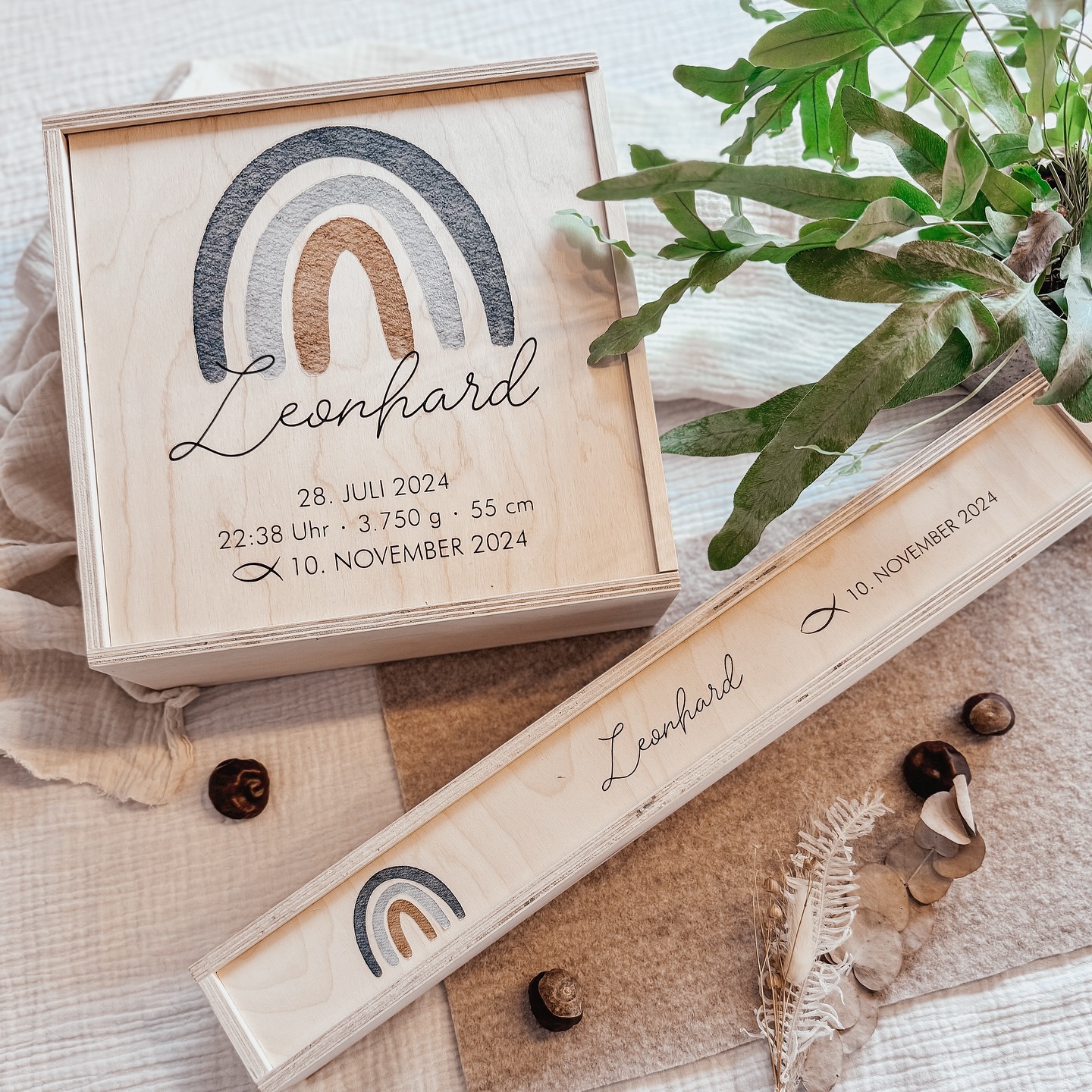 💛 Personalisierung: Schreib uns deine Daten in das Personalisierungsfeld und wir gestalten dir dein Unikat. Du kannst die Boxen auch nur mit dem Namen gestalten lassen – wir passen die Größe des Druckes immer genau passend an. Bitte beachte, manche Designs haben die Geburtsdaten (Gewicht, Größe, Uhrzeit) aus Platzgründen nicht drauf.