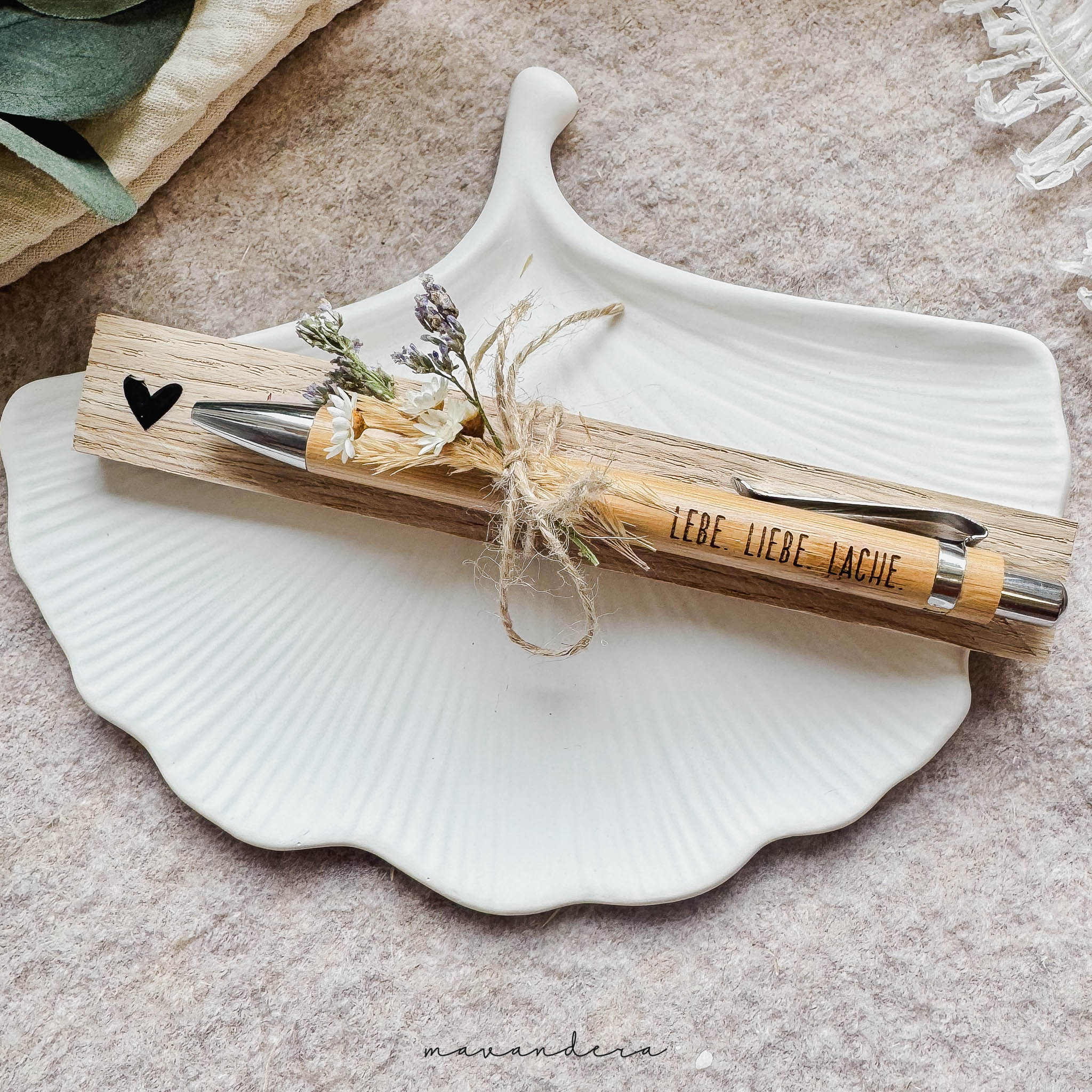 Kugelschreiber mit Gravur | LEBE LIEBE LACHE | Geschenkset (Personalisierung möglich)