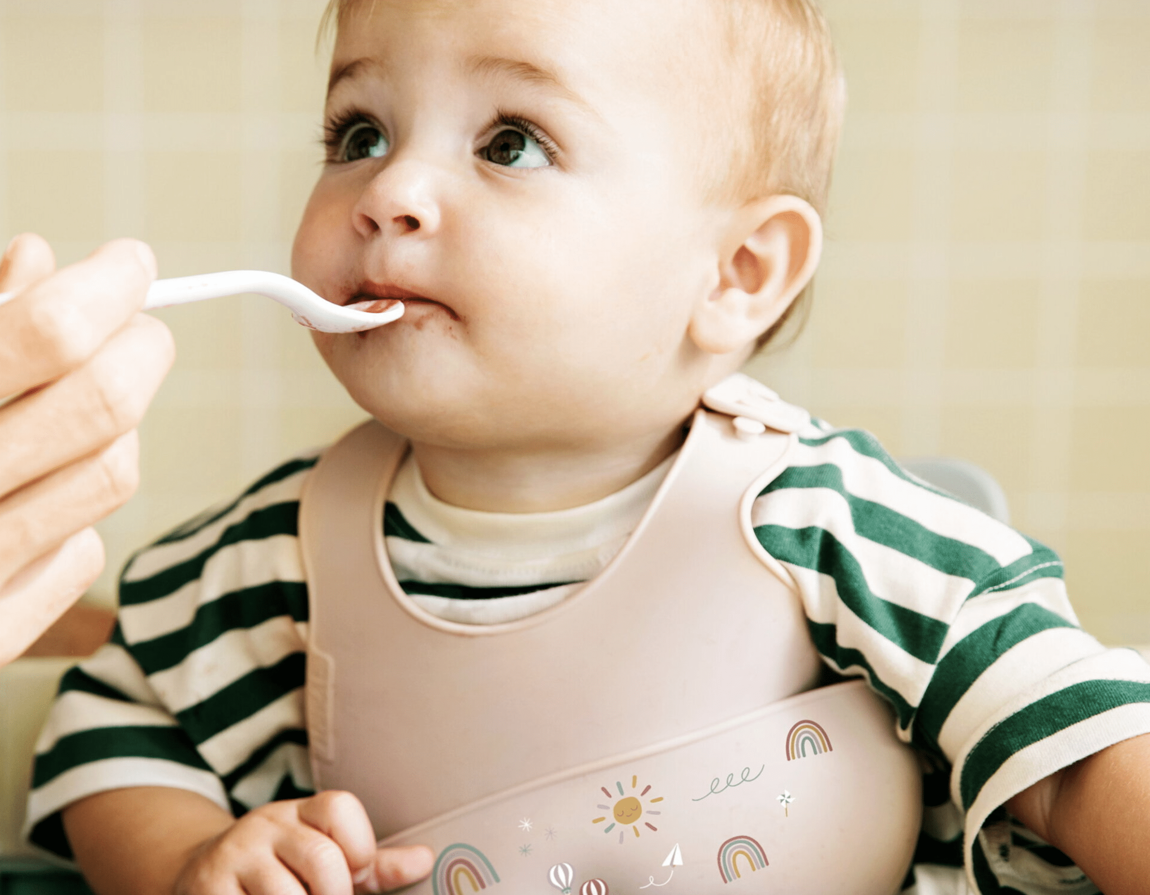 Das Set von zwei Futterlöffeln ist Ideal für die ersten Snacks von deinen Kleinen.