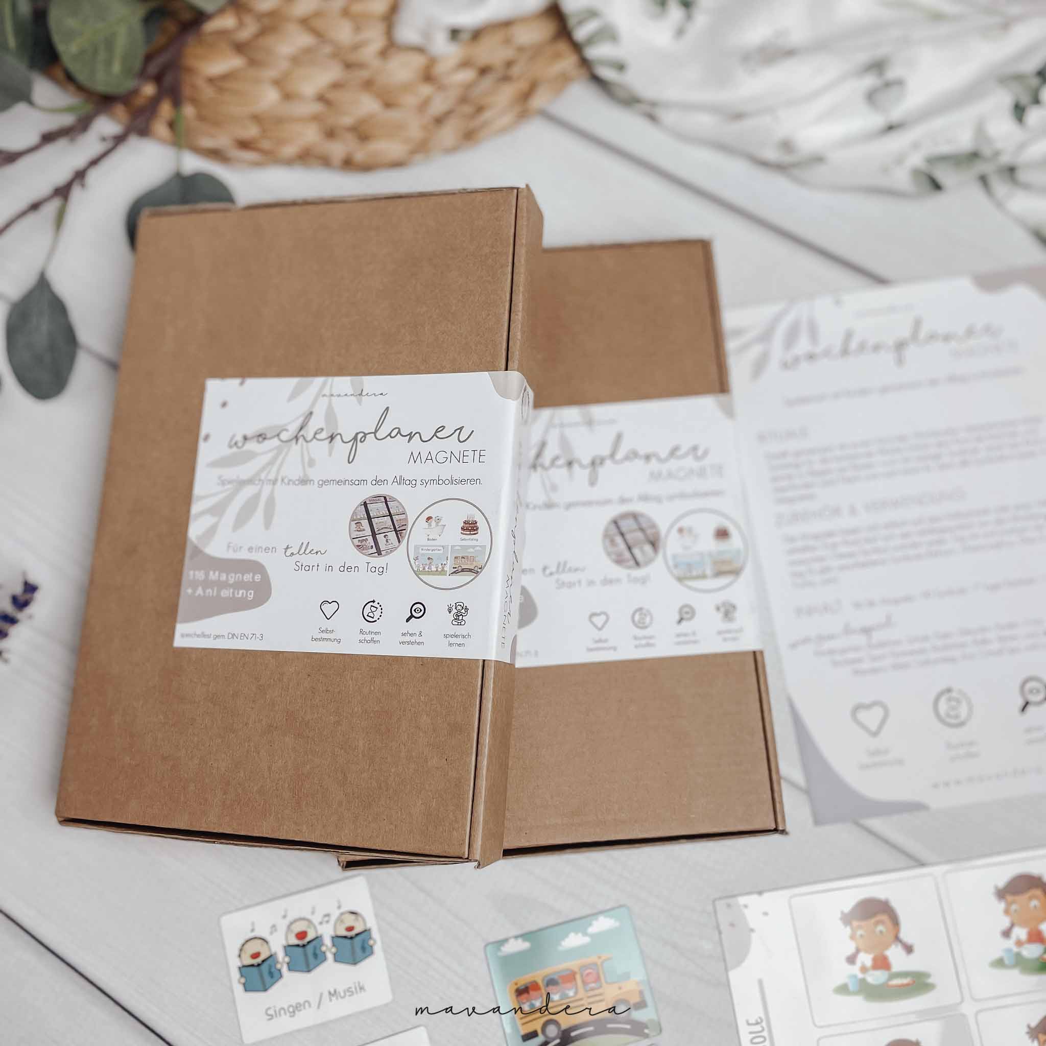 Du erhältst dann den Planer als digitale Datei und kannst dir alles selbst ausdrucken und laminieren (wir empfehlen ein Laminiergerät, gibt es schon günstig im Discounter um 10-20€ oder man leiht sich eines in der Verwandtschaft/Freunde). Ihr könnt die blanko Kästchen auch am PC digital erweitern und anpassen. Solltet ihr mehr Symbole brauchen (bei Geschwister Kindern) könnt ihr einfach die gewünschten Seiten öfters ausdrucken. Du bekommst die Datei mit den Kärtchen, eine detaillierte Anleitung, eine Materialliste (welche Magnettafel und welche Magnete ich empfehle), sowie eine Kostenaufstellung.
