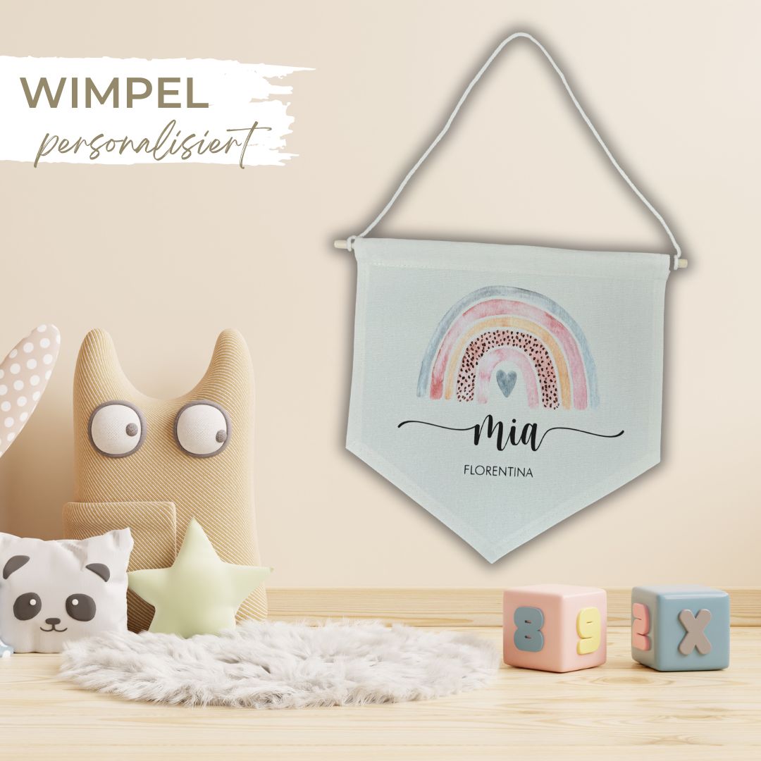 Ein personalisierter Baumwoll-Wimpel ist die perfekte Möglichkeit, ein individuelles Highlight im Kinderzimmer oder an der Zimmertür zu setzen. Mit einem Wunschdruck, der speziell für das Kind gestaltet wird, ist der Wimpel nicht nur eine liebevolle Dekoration, sondern auch ein einzigartiges Geschenk zur Geburt, das sowohl Eltern als auch Kinderherzen höherschlagen lässt.