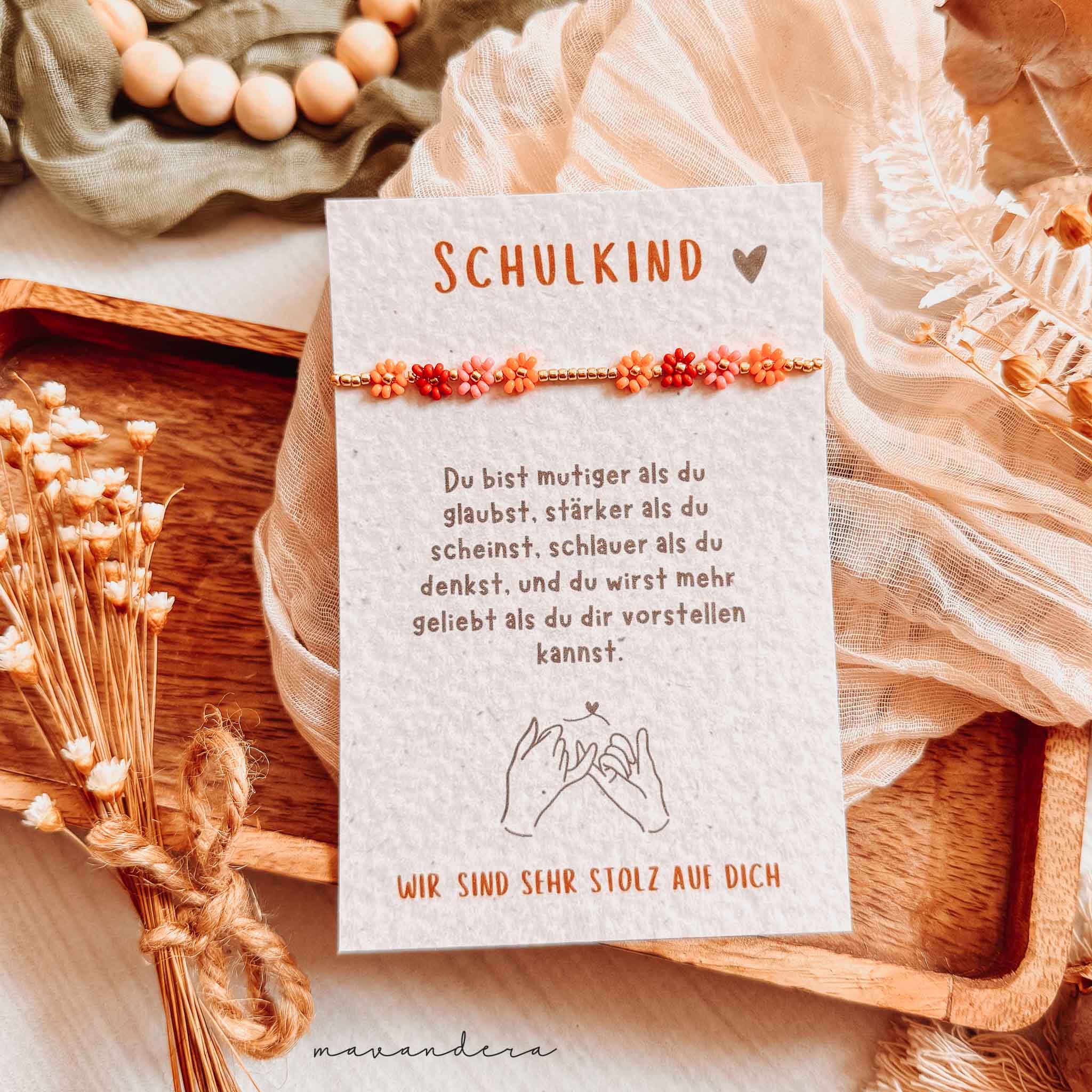 Schulkind – Armband mit Karte | Blumen bunt