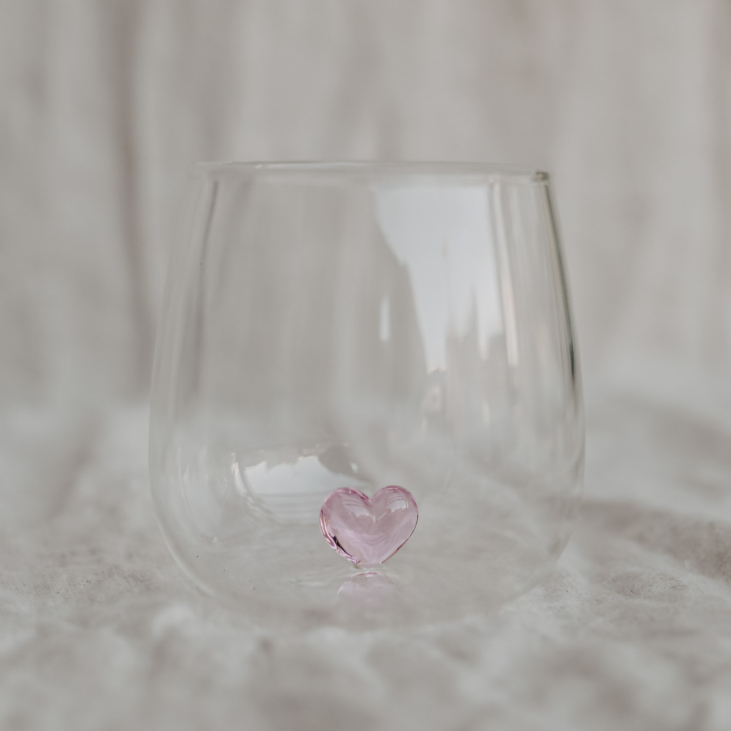 Tauche ein in die Welt der sanften Farben und zarten Emotionen – mit dem Trinkglas Herzfigur rosa. Dieses Glas besticht durch sein charmantes 3D-Herz in einem zartem Rosaton, das liebevoll in der Mitte angeordnet ist.