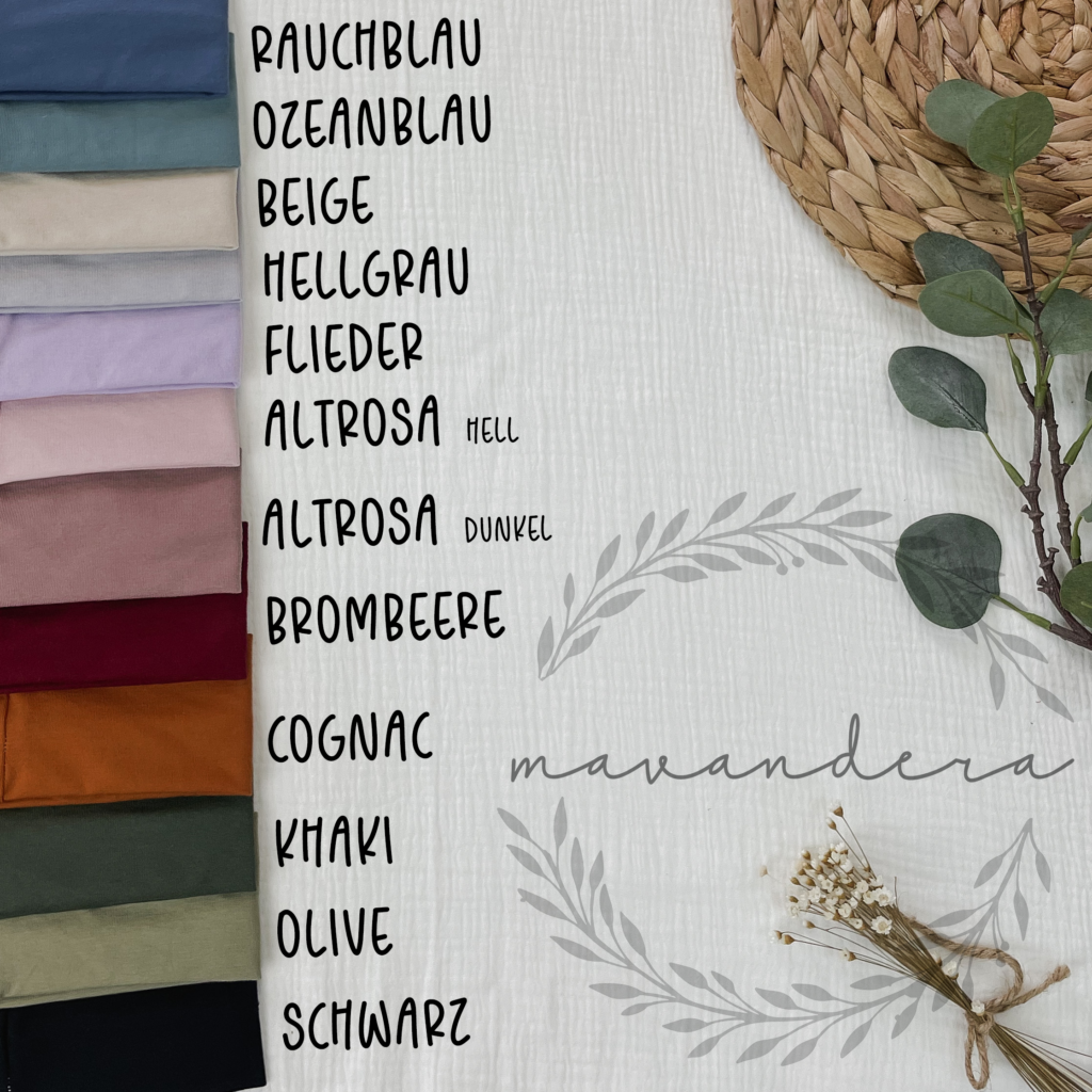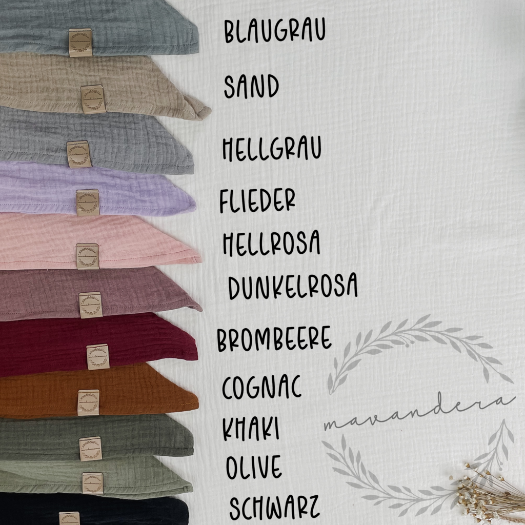 Unser Musselintuch in über 13 Farben – auf Wunsch sogar personalisiert!