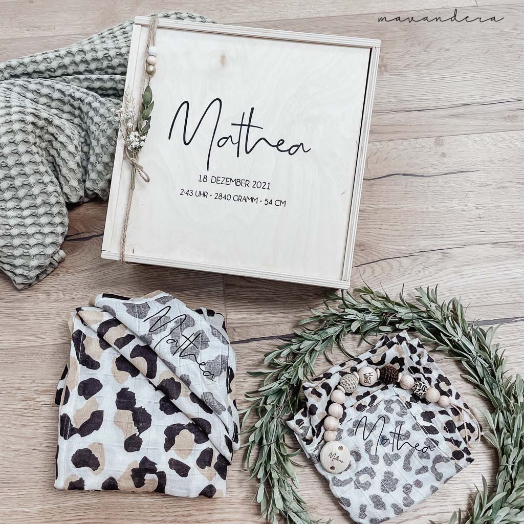 - Erinnerungskiste aus Holz mit Name (+ auf Wunsch Geb. Daten) bedruckt
